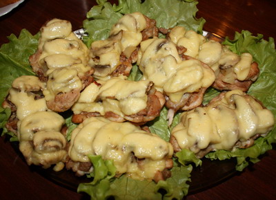 Говядина с грибами и сыром